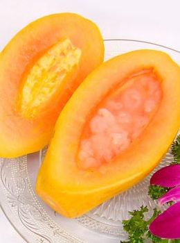 木瓜口感軟糯,味道甜美,通常被認為熱量很高。其實木瓜的熱量極低,比蘋果、橙子、桃、梨等的暖量都低,每100克裡只含27kcal,蘋果則是52kcal,而維生素C的含量蘋果的48倍,維生素A在水果中也可以說是最高的。