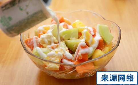 99健康網小編提醒:香蕉富含鉀、維生素B6,草莓、橙富含維生素C,火龍果粗纖維,如此一份水果沙拉,營養度高,代替午餐就最好不過了,MM們記得將沙拉換成低脂的哦!