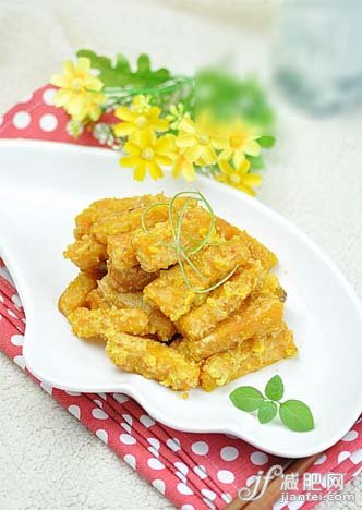 將蛋黃裹滿南瓜條全身,即可出鍋。