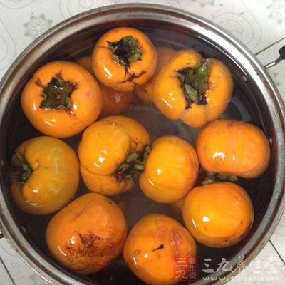 柿餅3枚(去蒂),清水和冰糖適量,蒸至柿餅綿軟後食用。