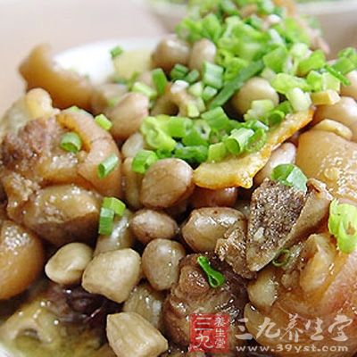 6、倒入花生,加蓋煮沸後轉小火45分鐘左右至湯汁收濃,加適量鹽調味即可。