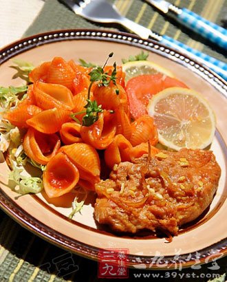 原料:雞胸肉、意大利貝殼面、洋蔥、胡椒粉、番茄醬、鹽、檸檬、大蒜瓣、蜂蜜、生抽、橄榄油