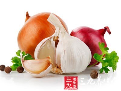 大蒜是天然的植物廣譜抗菌素,大蒜約含2%的大蒜素,大蒜素有很強的殺菌作用,它進入人體後能與細菌的胱氨酸反應生成結晶狀沉澱,破壞細菌所必需的硫氨基生物中的巯基,使細菌的代謝出現紊亂,從而無法繁殖與生長。