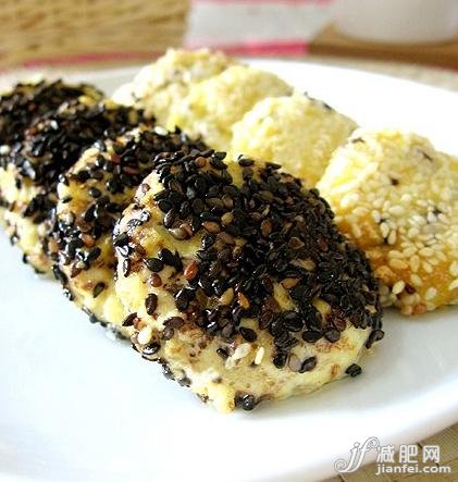 材料:豆腐半塊,香菇2朵,莴筍,白芝麻,黑芝麻各適量。