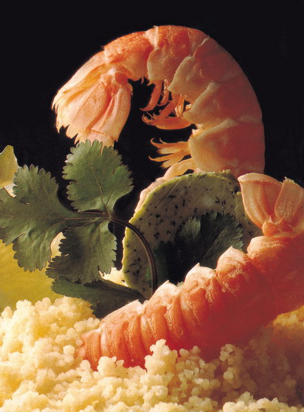 做法:大蝦是蝦中的佳品,最好選擇500克有六到八只的,也就是所謂的六頭蝦或八頭蝦。清理干淨的蝦用80克的大蒜和80克的白蘭地酒腌制30分鐘,可以讓蝦有泛音般通透飄揚的香味,但對於節日盛宴中的一道菜來說,僅有這樣的味道未免有些空洞,於是我們用200克的清奶油將蝦文火煨熟,讓蝦的味道增加一份沉穩,形成一個美妙的和弦。蝦做好後裝盤,旁邊配放上意大利面條和喜歡的蔬菜,一道亦菜亦主食的美味就完成了。別忘記將蝦頭向上擺個漂亮的姿勢,紅紅的蝦頭昂立在盤中,如熊熊燃燒的旺火,可以寓意來年的紅紅火火。