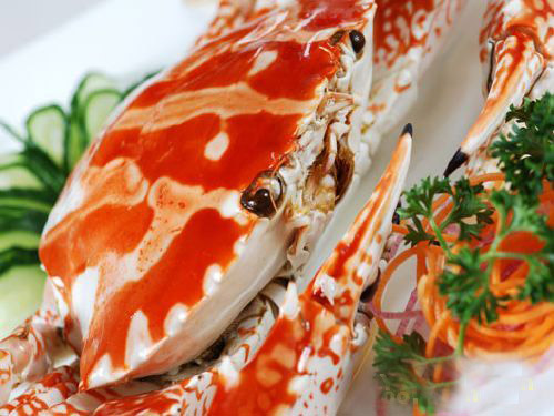 做法:最能完美演繹蟹之鮮美的非清蒸莫屬。蟹在蒸以前更要用細毛刷仔細刷洗干淨,特別是外殼的一些凹陷處。蟹在被蒸的時候會掙扎,導致肢腿斷失,我們最好先用針從蟹的嘴部扎進去破壞掉蟹的神經,這樣蟹蒸好後就不會有遺憾了。蟹放進籠屜的時候一定要背部向下,這樣蟹的黃膏才不會流失。因為蒸蟹是冷水上鍋,海蟹的身材又大多很魁梧,所以開火後需要20—30分鐘才可以讓蟹熟透。很多人都知道吃蟹要用姜來提鮮去寒,但姜皮的食性卻和我們這個願望是背道而馳的,所以要用10克去了皮的姜切成細末,調上50毫升的浙江紅醋,才可以又提鮮又去腥,並且保證吃完之後不會有不良反應。
