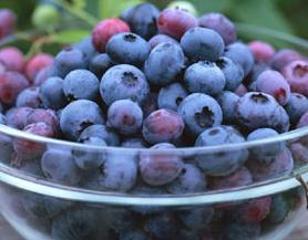 藍莓果富含大量超級的抗氧化物俗稱OPC的花青素,被國外專家稱為“抗氧化之王”。是一種眾所周知的保護視力的水果。除含有常規的糖、酸、維生素C、礦物元素外,藍莓果實中還含有尼克酸、SOD、黃酮等特殊成分,具有良好的防腦神經老化、強心、抗癌等保健作用。
