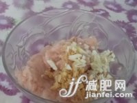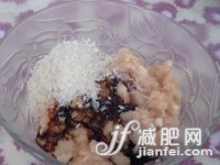 蔥姜剁碎,與雞肉置於一個容器中,攪拌均勻。