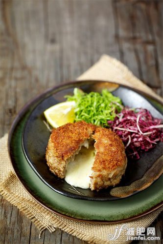 150g 牛肉糜、50g 豬五花肉糜、120g Mozzarella cheese、1/4個 洋蔥碎、1個 全雞蛋、2個 雞蛋白、1/4tsp 鹽、1/2tsp 醬油、1tsp 昆布汁、1tsp 味淋、適量葵花籽油、適量現磨黑胡椒、適量 面粉、適量面包糠