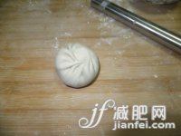 白面和南瓜面各半,分別加酵母粉和成面團,發酵充分,發好的白面和南瓜面分成相等數量的劑子,白面劑子擀成圓皮,南瓜面劑子搓成圓球。