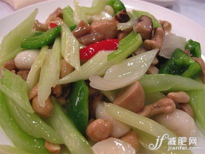 [材料]拘杞子20克,西芹250克,西蘭花100克,紹酒18九,鹽4范,味精3克,姜5丸,蔥10九,索油35克