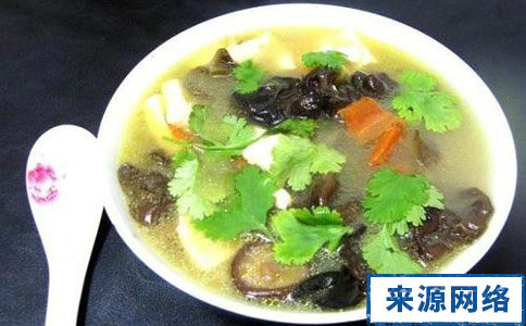 ③把這些都放在開水裡煮,煮熟後撒入蛋花,放入適量的鹽、雞精、少許的白胡椒粉和香油調味,即可出鍋。