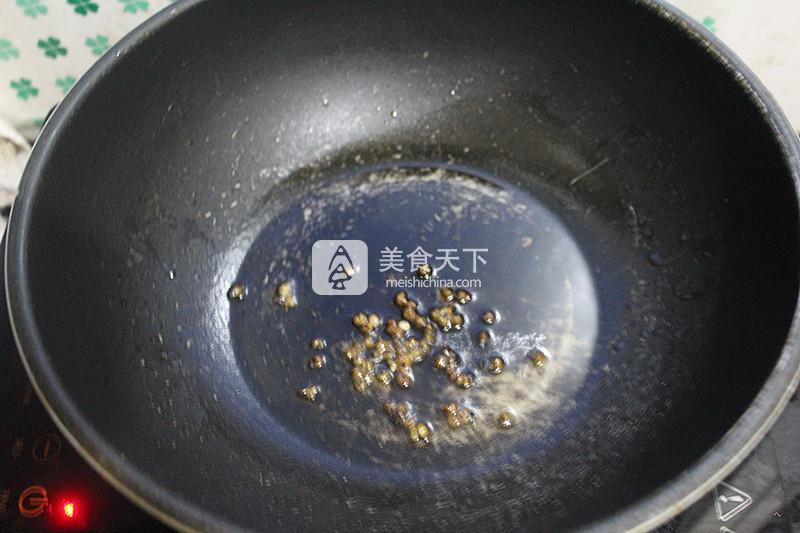2鍋裡加底油,小火煸花椒,出香味,變色後撈出。