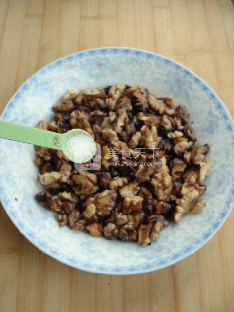 “核桃仁含有較多的蛋白質及人體營養必需的不飽和脂肪酸,這些成分皆為大腦組織細胞代謝的重要物質,能滋養腦細胞,增強腦功能,是公認的養生佳品。略經炸制的核桃仁口感更酥脆,加一點點鹽調味兒,口感豐富,香極了!”