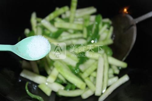 “這道辣椒炒西瓜皮無任何調料,只用鹽和鮮醬油,這菜清爽味鮮很脆”