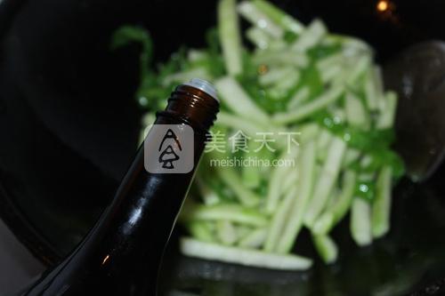 3青椒洗淨切條,腌制好的西瓜皮洗淨