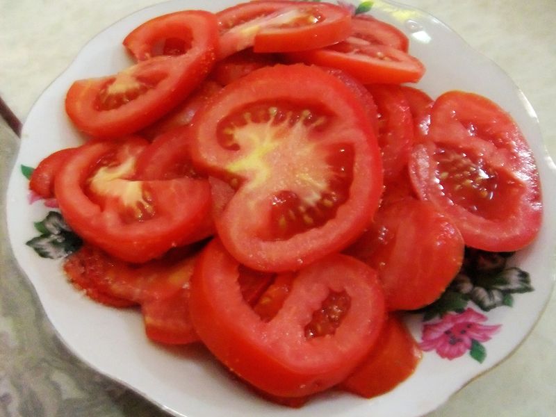 2把洗干淨的西紅柿,均勻切開,適當即可,不要太大,也不要太小。