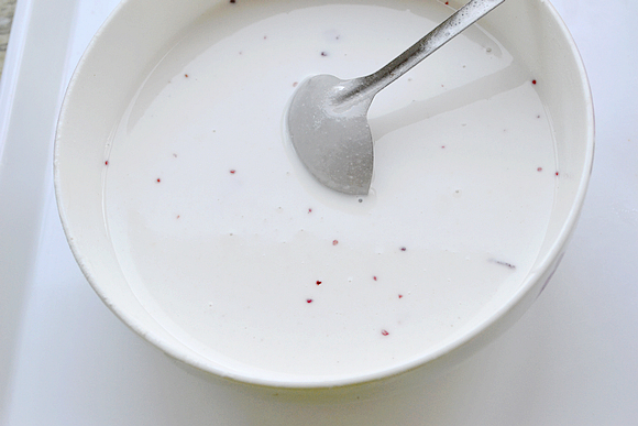 6米糊冷卻下,倒入槐花水,放冰箱冷藏下,取出脫模。