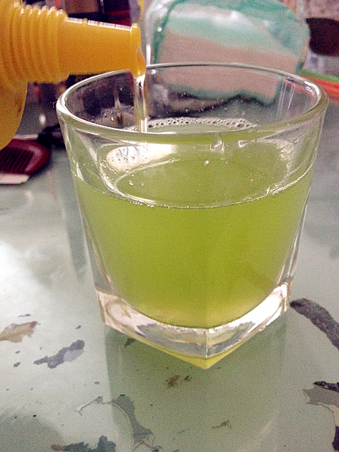 3我用的是攪拌杯.把芹菜打成碎渣後過濾芹菜汁.濾除菜渣.