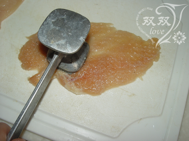 2用松肉錘敲松。