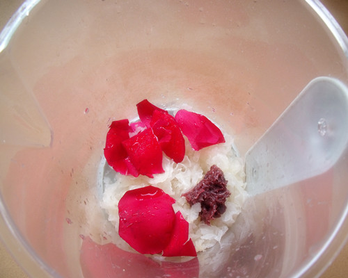 5將玫瑰花瓣、玫瑰醬、銀耳全部放入到豆漿機中。