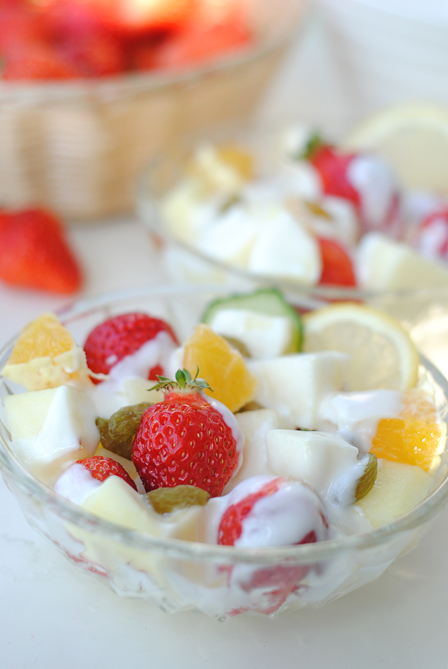 “周末才去摘的新鮮草莓,回家後就做了這個草莓酸奶沙拉,如果在夏天,冰鎮後吃,特別的舒服美味。