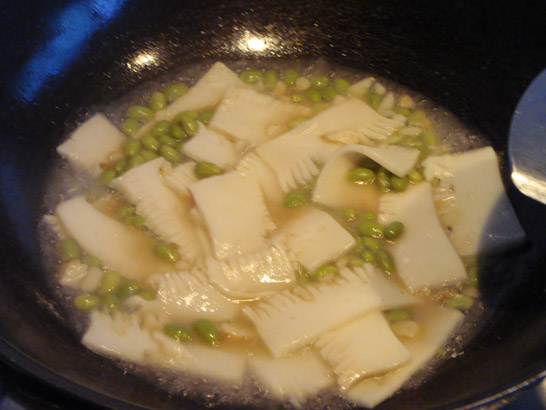 5先下魔芋塊翻炒。