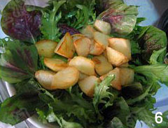 6蔬菜上放煎好的土豆、蛋黃醬、熟芝麻、海苔碎,拌勻即可。