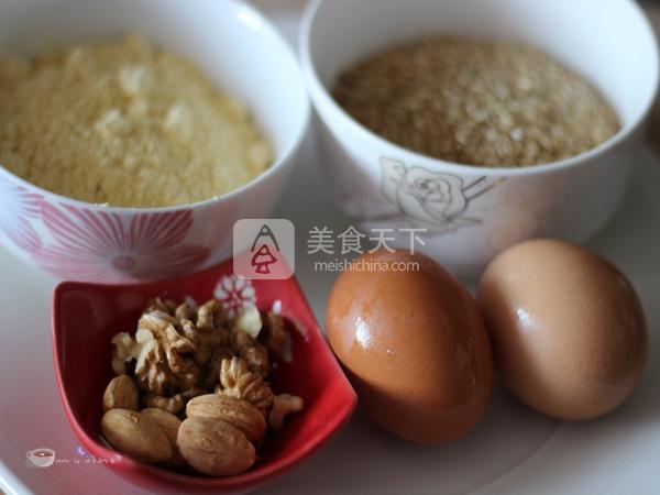 2將核桃和杏仁烤香後,和高粱、燕麥、糙米一起放入料理機裡打成粉末。(一次性多打一點,便於操作,也便於隨時好使用)
