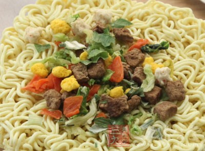 蔬菜和肉補充了脂肪、維生素,又改善了方便面原有的口味。