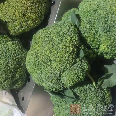 1、把蔥、姜切好,西蘭花焯水放在一邊備用。