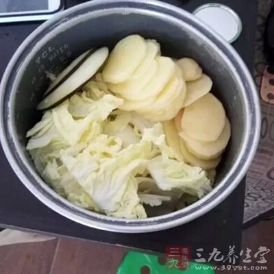 土豆洗淨削皮後切成0.3cm厚的片裝盤。平菇和菜花分別洗淨,掰成小塊備用。