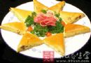 5、將烤鴨餅逐張分開,把炒好的北極貝和玉米筍裹在烤鴨餅中,做成火炬狀,再在“火炬”外面點綴少許海鮮醬即可上桌。