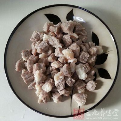 1、牛肉切成1.5厘米左右的小塊,放在水裡灼一下,灼好後漂去浮抹(一定要漂干淨,這點很重要)