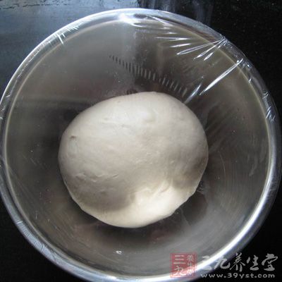 3、將面團放入容器中進行二次發酵(容器四周塗一層油防粘)