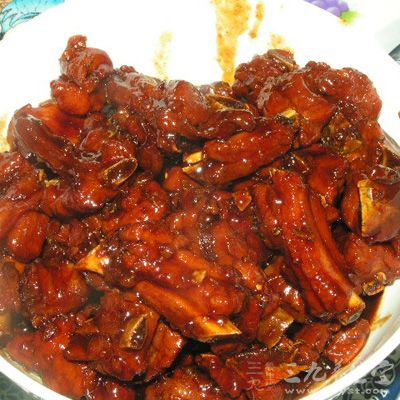 2、鍋內放油,燒至五成熱時,將排骨炸至表面呈焦黃色時撈起瀝油;