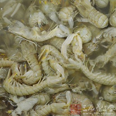8、鍋裡倒入食油,油熱後放入擇洗好的海蝦炸制金黃。