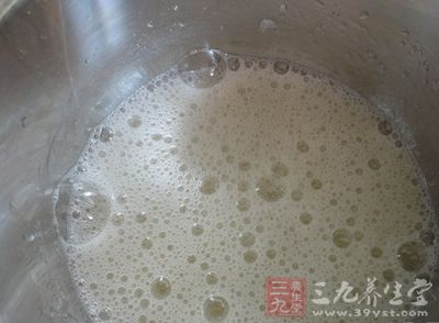 4.加入牛奶,迅速攪拌均勻成糊,然後加入高湯。注意:高湯不要一次全加進去,可視湯的濃稠度進行調整。