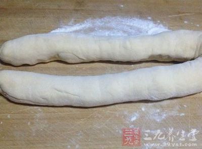 7.取出面團,撒點干粉在上面,揉成長條後切成小塊。不敢加太多干粉,也不敢用力揉搓,擔心給壓實了,蒸的時候發不起來。