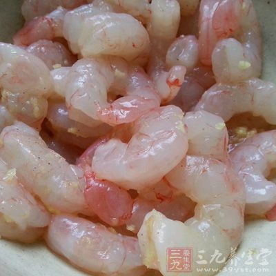 2、將鮮蝦處理干淨,只保留蝦仁,拭干水分,加入少許鹽,料酒,水澱粉,雞蛋清上漿。