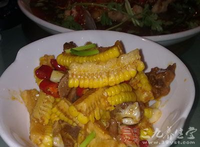 6.加入玉米,再放一勺鹽,加蓋,繼續炖15分鐘,炖好後,就可以出鍋裝盤了。