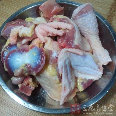 1、雞清洗干淨後,瀝干水分;把雞腳斬下,用鹽把瀝干水分的雞全身內外都塗遍,並適當用手幫雞按摩幾下,讓鹽分充分滲透進去;