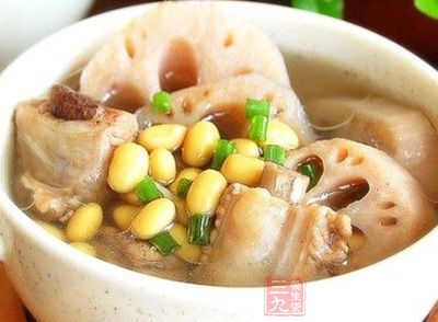 材料:七孔蓮藕500克,花生100克,薏米30克,枸杞半把,大骨500克,姜兩大片。