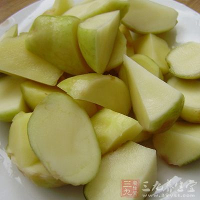 2.鍋中倒入多一些的油,七成熱時,先將土豆塊放入,炸成金黃色,略顯透明時撈出備用;
