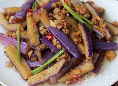 2.坐鍋點火放入油,油溫4成熱時,放入茄子片炸至金黃色時撈出;