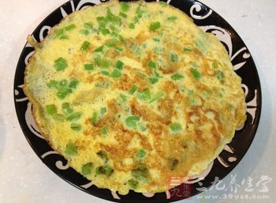 5)平底鍋加少許油,倒入蛋液,小火煎熟即可。