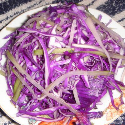 1、將苦瓜、絲瓜、紫甘藍切成最細的絲備用。