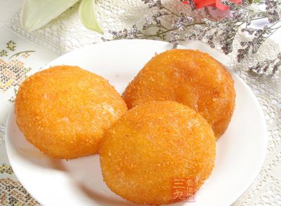 1、南瓜餅上又細末易掉末,下鍋炸時不能一直翻動;