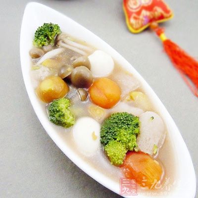 真姬菇1/2盒,竹荪8朵,山藥100克,栗子(鮮)8個,聖女果6個,西蘭花100克,鹌鹑蛋6個,食鹽1小匙,醬油1大匙,雞精1小匙,香油1大匙,澱粉適量,水適量。