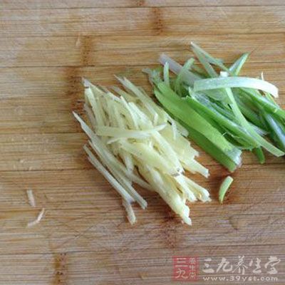 1.先把蔥姜等分別清理好後切成絲,備用。豬肉切成一片片的。